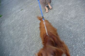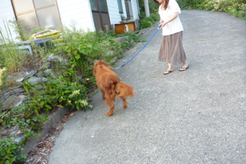 道を歩いてゆくと、島の若い女性が犬の散歩してた。