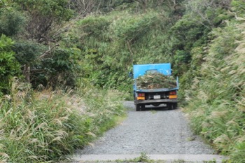 ダンプとすれ違う(ゴミを捨てにどこかへ行っていた)