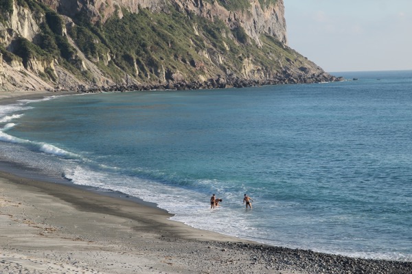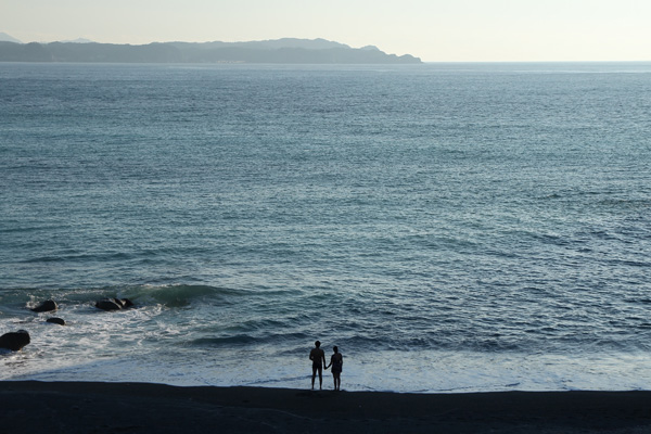 遠いし、波の音で何を話しているかわかりません。