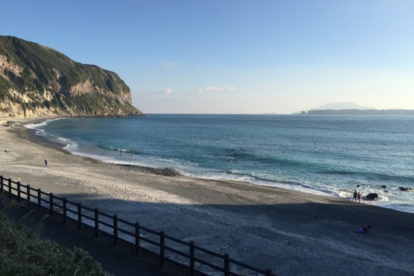 美しい新島の砂浜を若い二人が歩いていました。