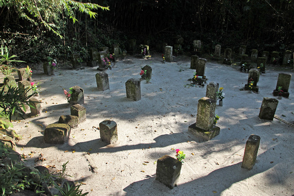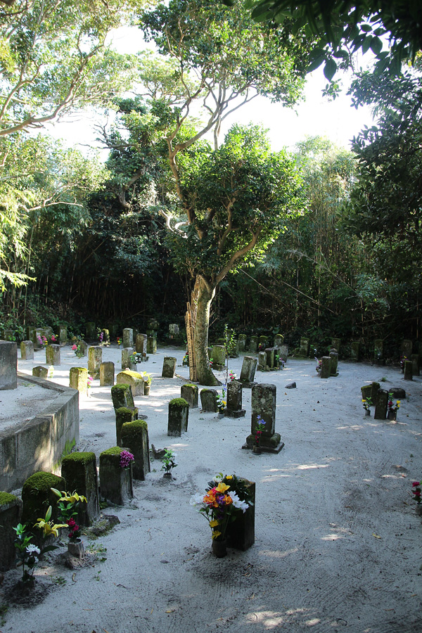 この墓地は他の島民のお墓より一段低い場所に作られていて、昔は樹木によって他の墓地とは区別され、通りぬけも出来なかったそうです。