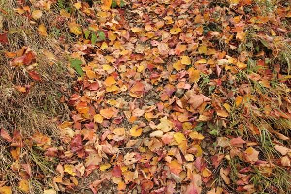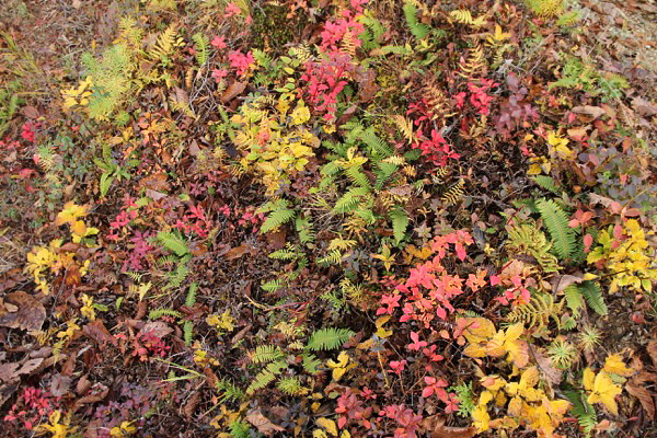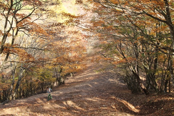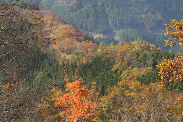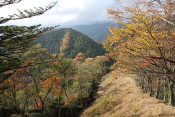 川苔山から、川苔山の肩まで下る道、すっかり秋色。