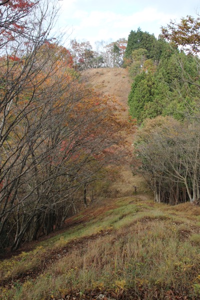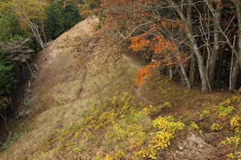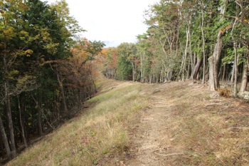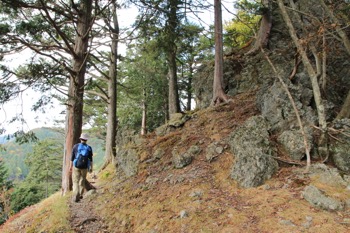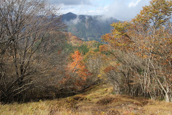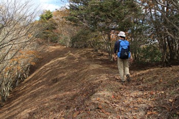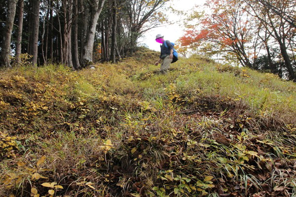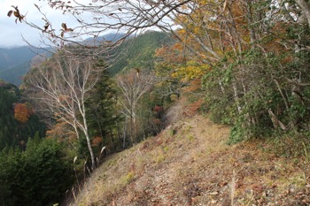 曲ヶ谷北峰付近から、狼平への下降路。