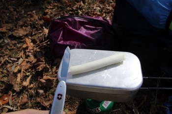 風が強かったんで、ザックを風防代わりに使いましたが、効果は薄いですね。