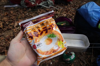チキンラーメンは、煮込む時間は1分でガスの節約にもなるし、いざとなるとそのままでも食べる事が出来るので、登山にこれ以上に最適なラーメンは無いのでは?なんて思います。