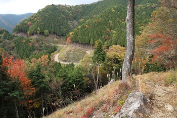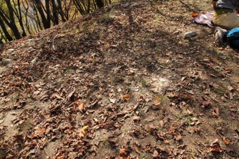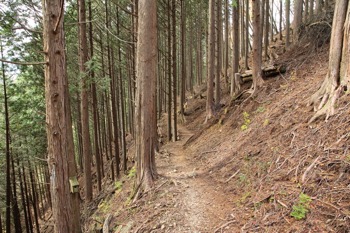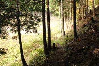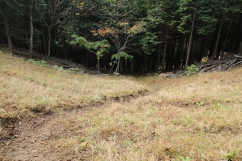 ※斜面にうっすらと踏み跡があるのがわかると思います。森を抜けて林道へ続いています。