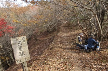下っていたら、下方に道標が見えてきた。あそこが『狼平』です。
