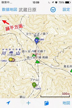 ここから、普通に下るのも、山行記録として面白くないので、ちょっと普通はあり得ない道を通ろうと思いました。