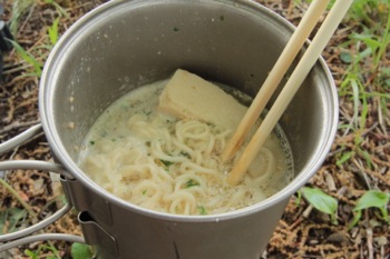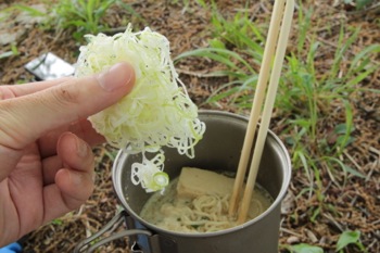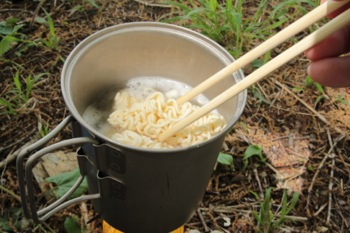 程なくして、お湯がぐつぐつと沸いたら。ラーメンを追加。