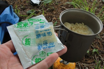 そして、粉末スープと、調味油を入れたら完成だっ。