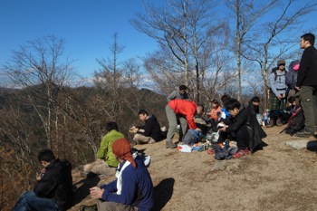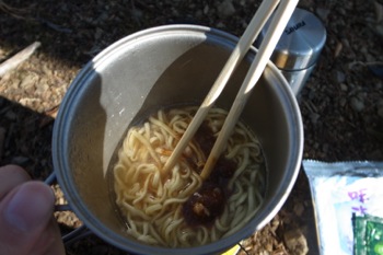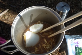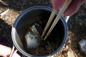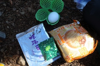 寒い山頂で食べる、味噌ラーメンをすする・・。。