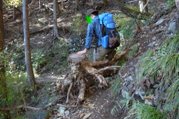 ※鉄梯子(階段)が出てくる周辺から百尋の滝まで、本当に危険な道が続きます。ストックなどは収納して手を自由な状態にしてから歩いた方がいいです。 靴紐を結び直すなどして備えてください。