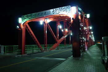 ライトアップされた峰谷橋。