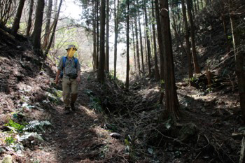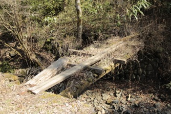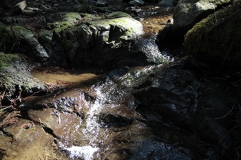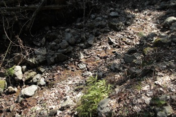 西山峠から下るとすぐに川が出てきます。最初は枯れているように見えますが、だんだん水の音が強くなってきます。