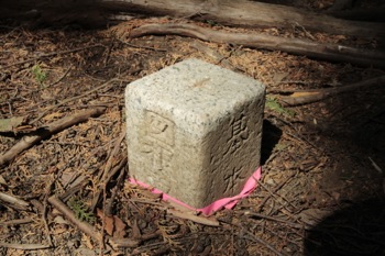 地面を見ると、なにか埋まっている。『基本』『図根点』 って書いている。