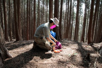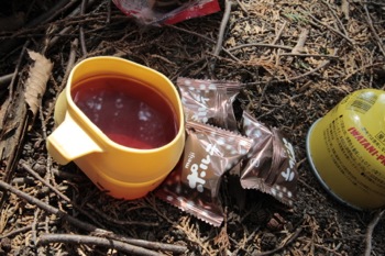 ルックザックの中からコッヘルを取り出して食事の準備をします。