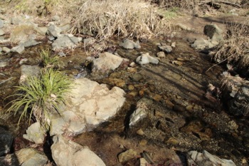 注意して歩いていたつもりだったけど、足がとられて谷川に滑った。