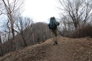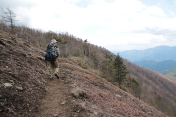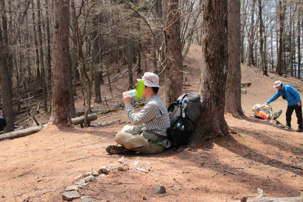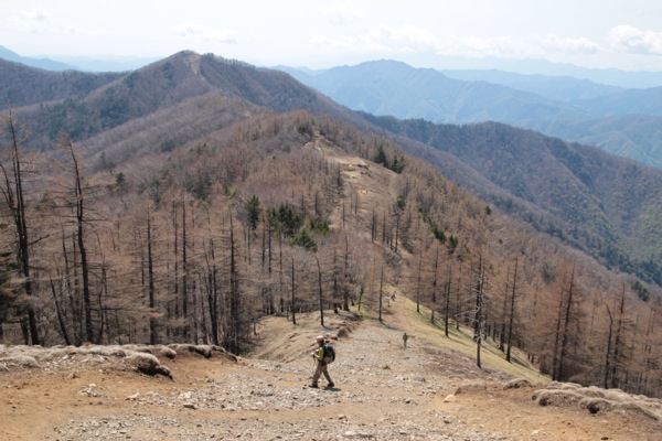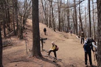 下の方を見ると、人が上がってきている。 単独行の男性は歩いては休み、歩いては休みで、とてもキツそうだった。