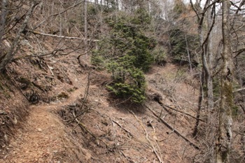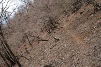 日陰名栗山の巻き道もやけに長い。 巻かずに登った方が時間的には速いかもしれない。