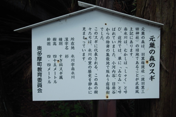 集落の中を歩くと、『元巣の森の杉』という巨木がありました。