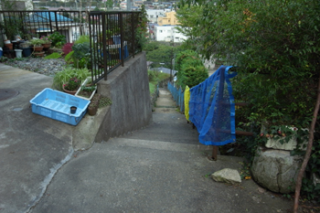 民家の脇をすり抜けて・・・。