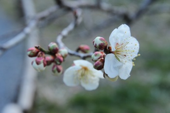 梅は桜と違って、ちょっと花が固い印象がある。