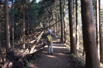 堂所山からは、根っこが縦横無尽に走った斜面を下り、裏高尾縦走路へ接続します。