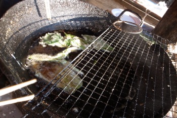 で、茶屋をのぞくと、山菜天ぷらが食べられそうだったので、