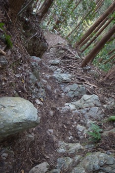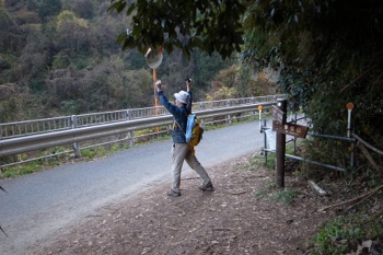最初は高尾山まで行こうかと思ったけど、すこし膝に違和感があるので、無理はやめて小仏バス停方面へエスケープします。