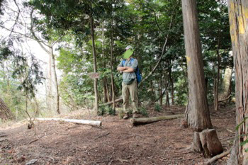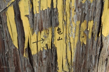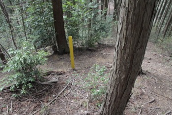 黄色い杭と、はっきりとした踏み跡が見えてきた。
