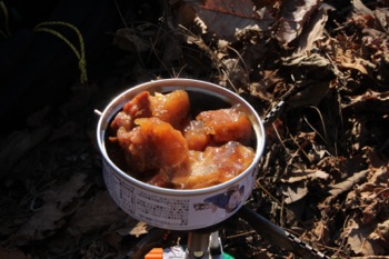 鋸尾根に入って、稜線の左肩に細く道がついているので、右側の小高い場所に登っていって登頂。