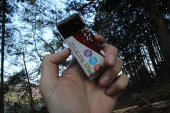 もうちょっとで下山だけど、ここで行動食を食う。