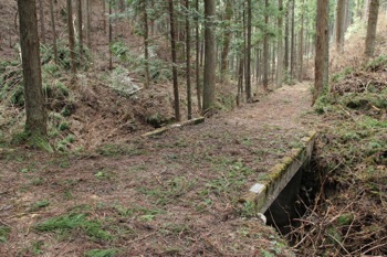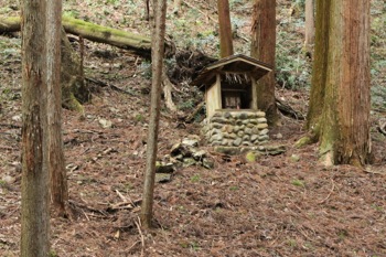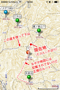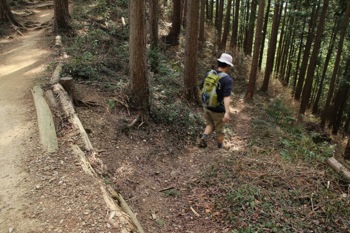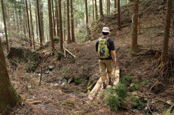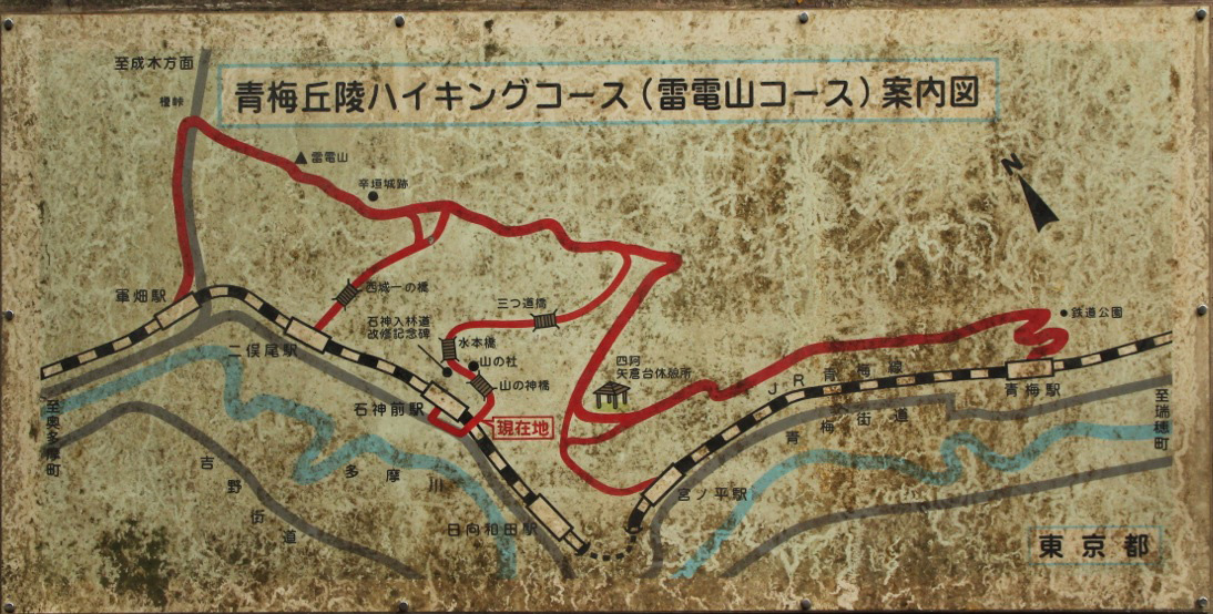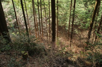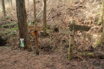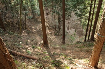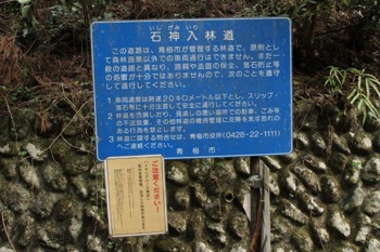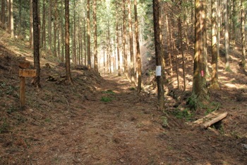 ※2016年現在、ここからの下降路は通行止めになっています。林業の作業がおこなわれているそうです。 青梅丘陵では、盛んに林業の作業が行われているそうです。使えてる道が突然使えなくなるなどの可能性が高いです。 林業関係の人の邪魔にならないように配慮してください。