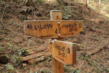 『ハイキングコース9』からやってきて、『46いしがみ』へ向かいます。