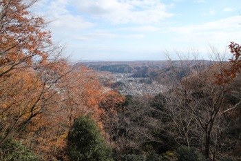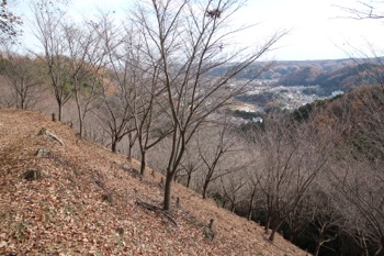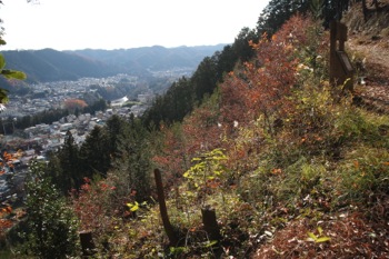 遠くに青梅市街が見える。