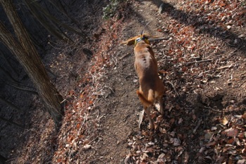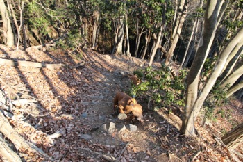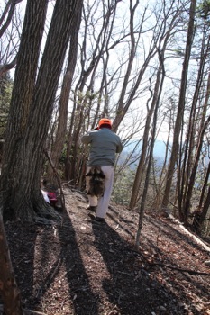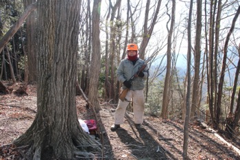 腰越山に来ると、ハンターさんが2名山頂で待ち伏せ攻撃(?)の準備をしていた。