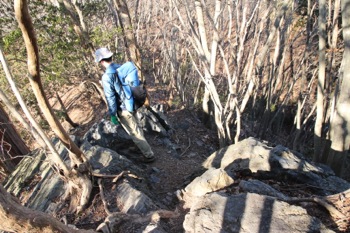 岩茸石山の北側の斜面から下って、黒山方面へ縦走します。