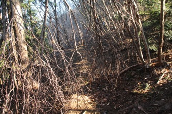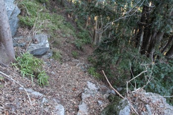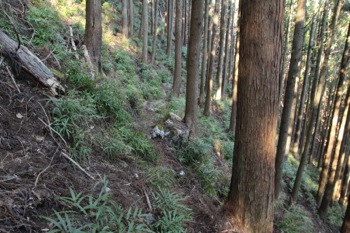 横断気味に尾根の上へ詰める(道はしっかりある)