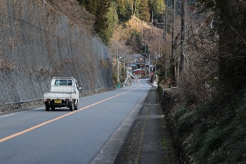 車道を歩く。