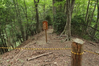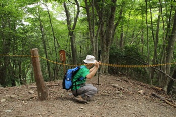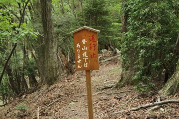 ここはトラロープが張ってあり、『通行止 登山道ではありません』の立て札が立っています。