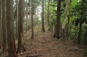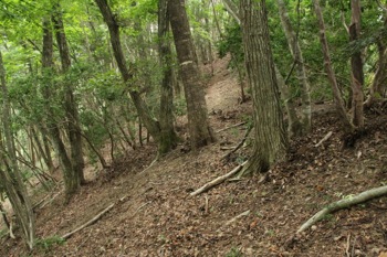道が尾根から右側へ交わして行く。