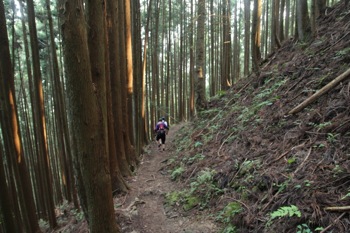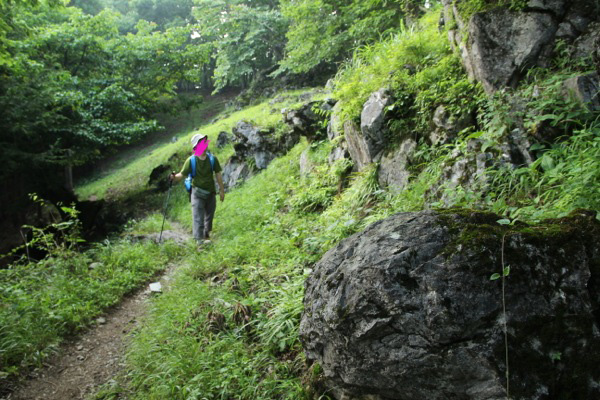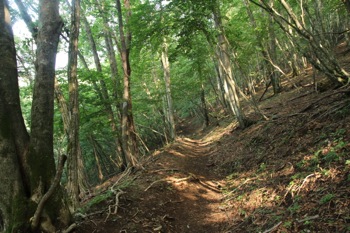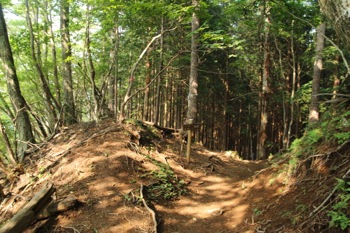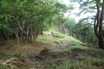 六ッ石山から、石尾根の下り坂。かなりの急斜面。