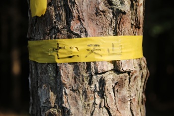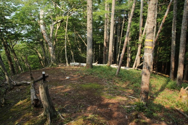 山頂と思われる場所には誰かがつけた黄色のテープが残っている。