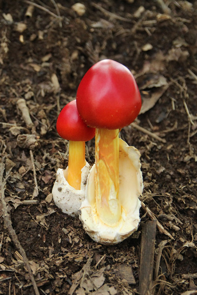 ※3 奥多摩山域のキノコは、例の原発事故の影響があって、普通に生活するには影響は無い程度の汚染度らしいのですが、 キノコは土中のセシウムを集めやすいので出来れば食べない方が良い・・と言う事らしいです。 そういう影響もあったのか、ほとんど誰も採取しないよう、あちこちでタマゴタケを見る事ができました。(ただしこの手の情報もどこまで正しいのは真偽は測りかねる部分があります、 何が本当で何が嘘かを見極めるのがとてもむずかしい時代ですね。)