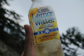 凍結ボトルのレモンウォーター。まだ氷が残ってる。