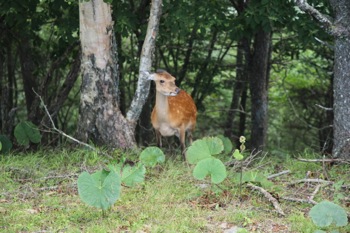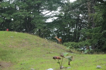 ごはんを食っていたら、ちょっと離れた所に・・なんと鹿が顔を出した。