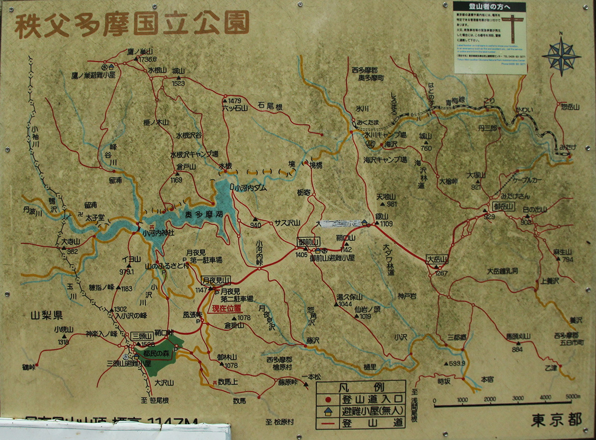 ここは奥多摩三山の御前山と三頭山の間の稜線上にある山です。