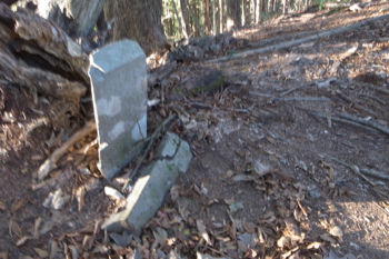 道を降って行くと、なにか石版っぽいものが。