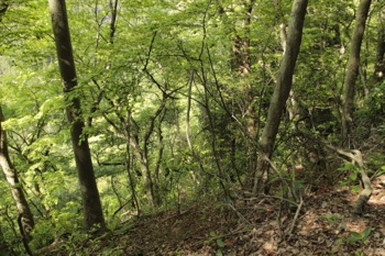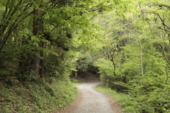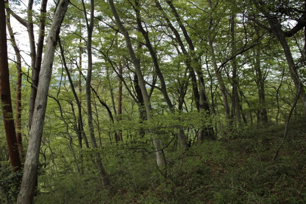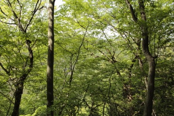 木々の緑がまだ若く、爽やかな森です。