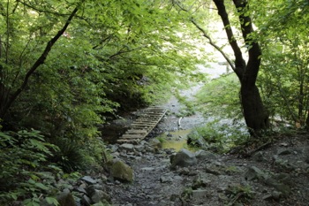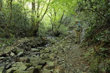 下って行き、麓が近くなると小さい沢。